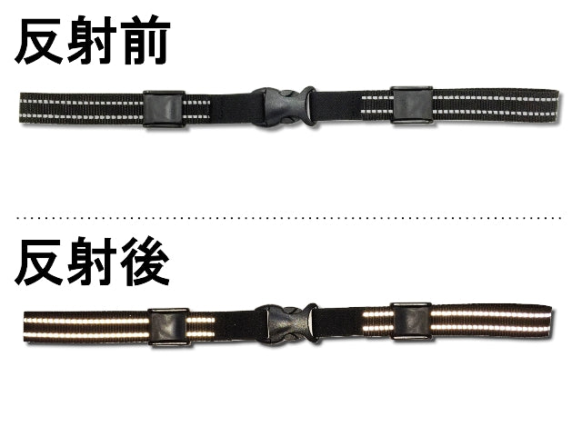 ●お持ちのリュックの肩ベルトに取り付けるだけで、リュックのずり落ちを防止するバンドの【反射材付き】です。
