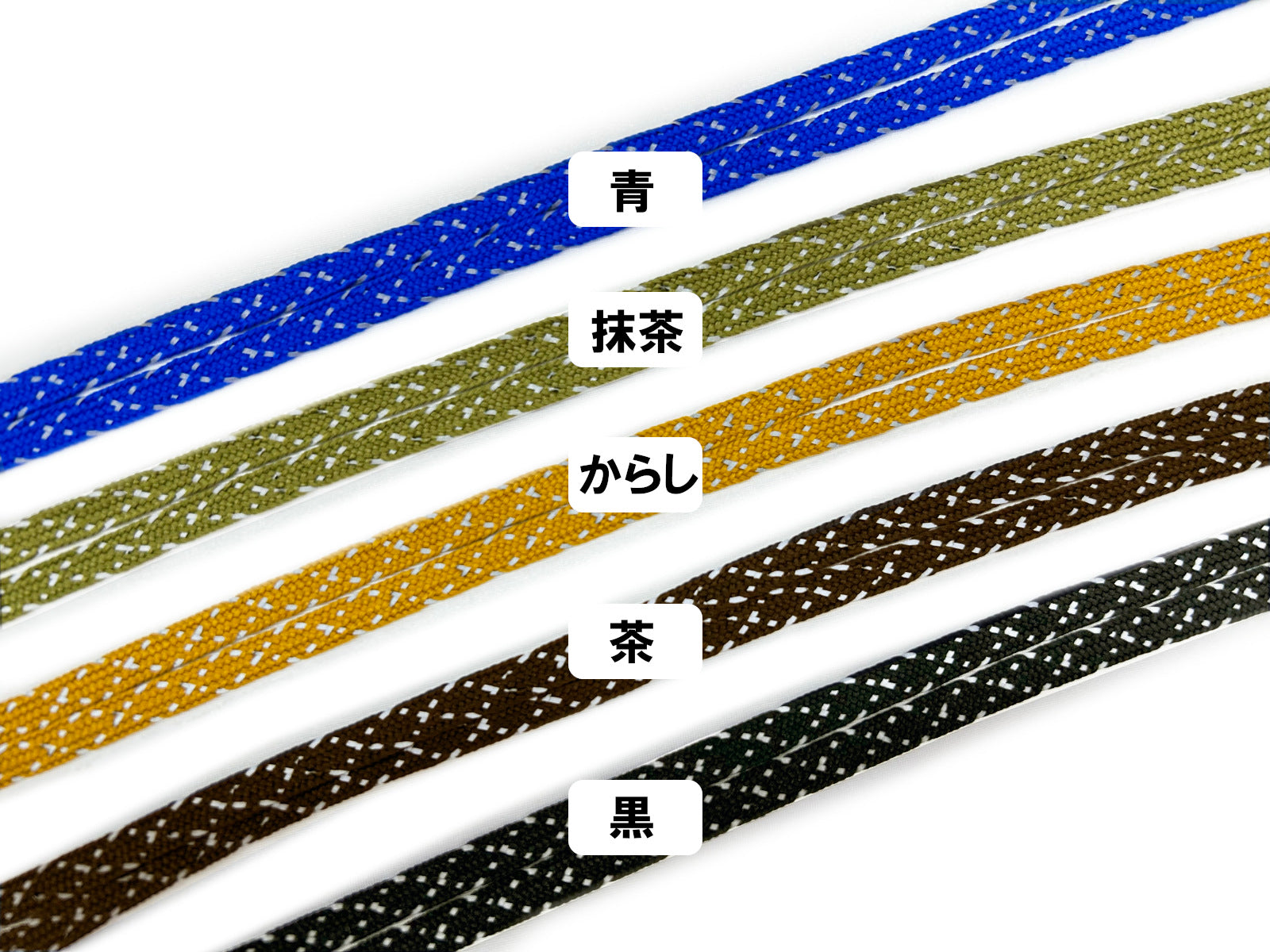 ★車のライト等にピカッと反射して存在を相手に知らせる反射材入り紐使用。